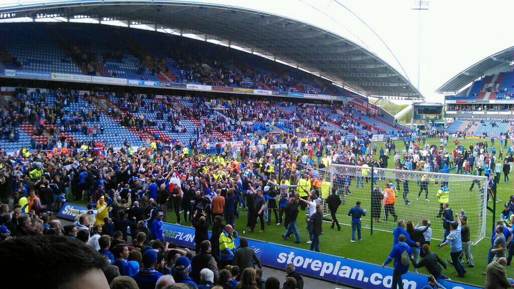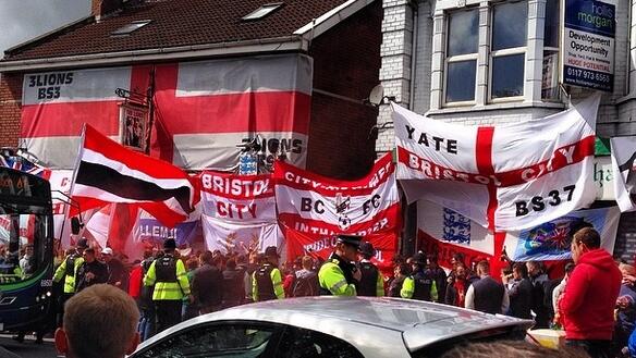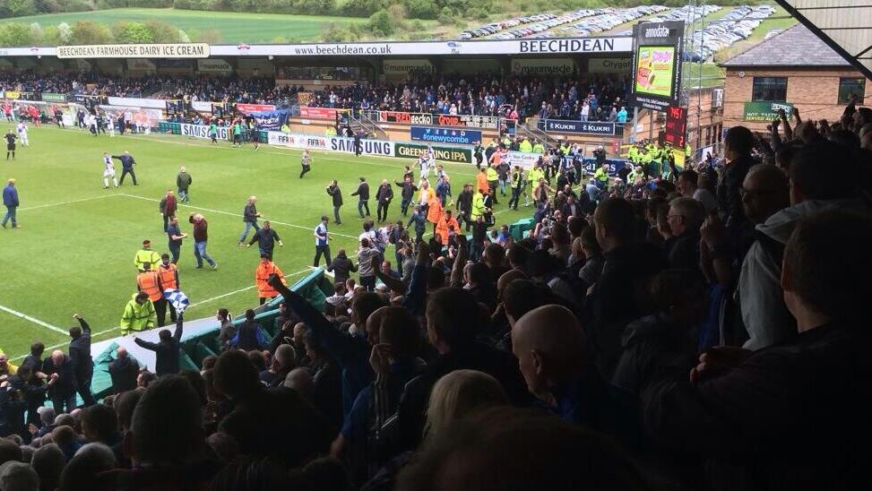 | Torcida do Bristol Rovers invade o campo para comemorar gol |